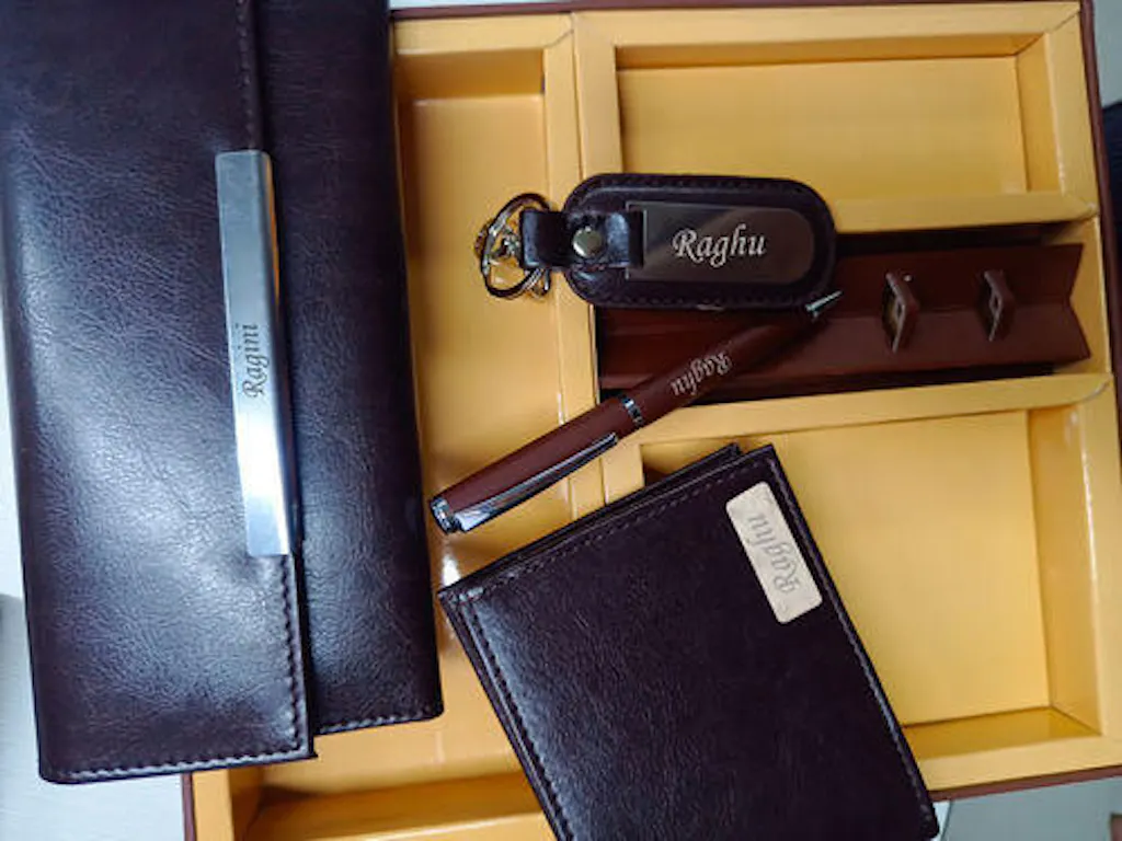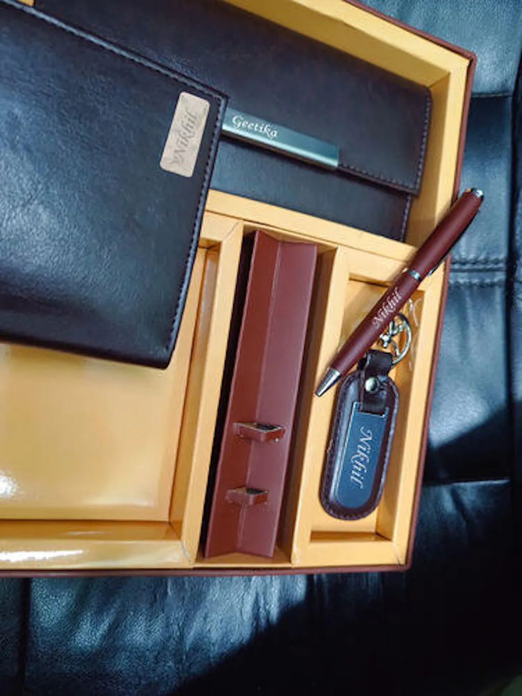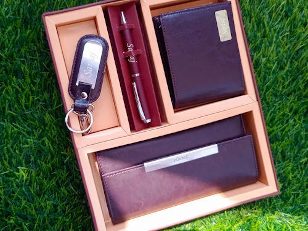 This modern utilitarian gift box has a luxurious matte finish, name customization options, and a contemporary design. Moreover, the durable leather construction of this thoughtful gift, makes it an irresistible choice.