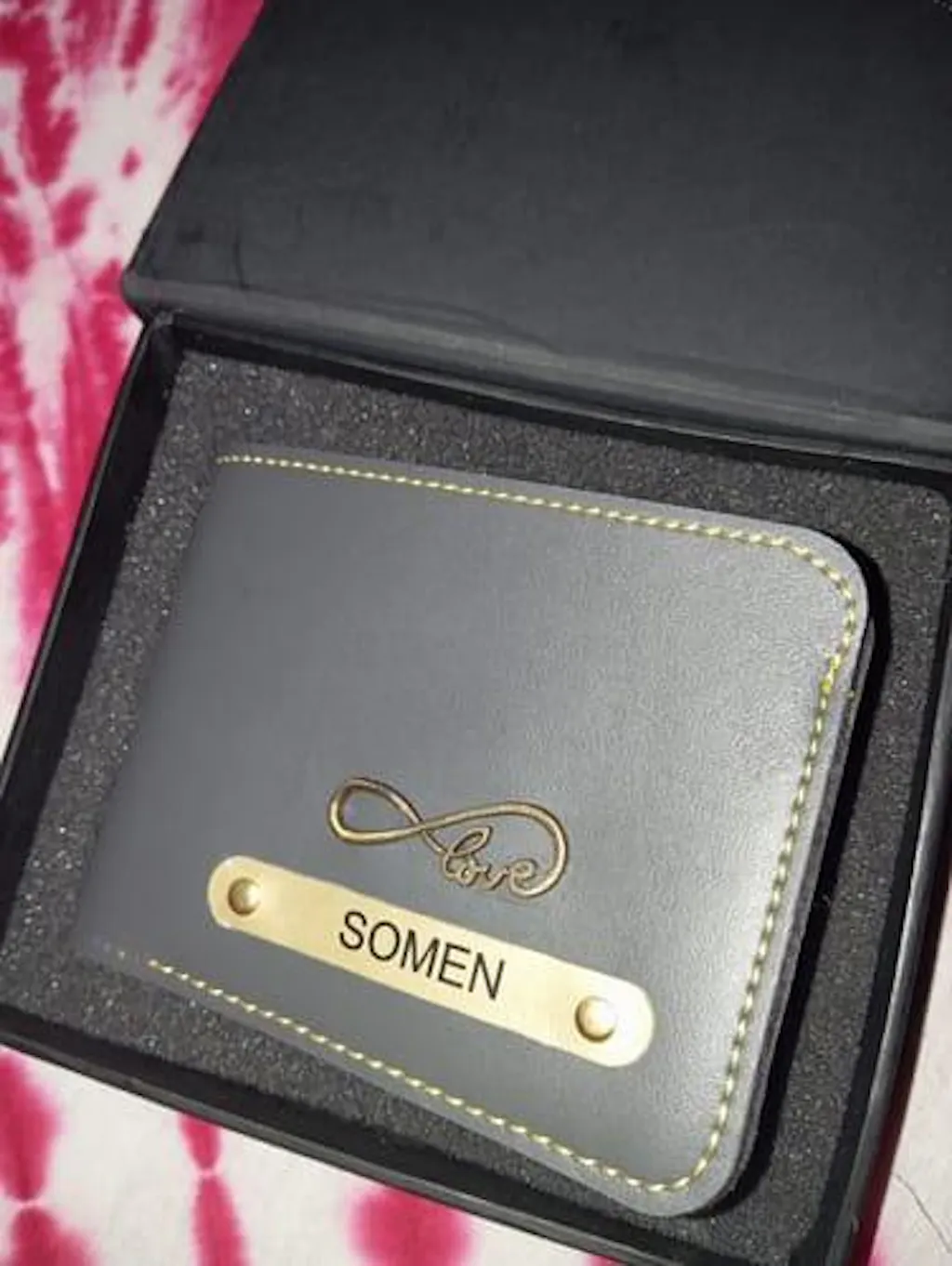 Personalization: Add name & charm (embossed on a golden strip pasted on the wallet)