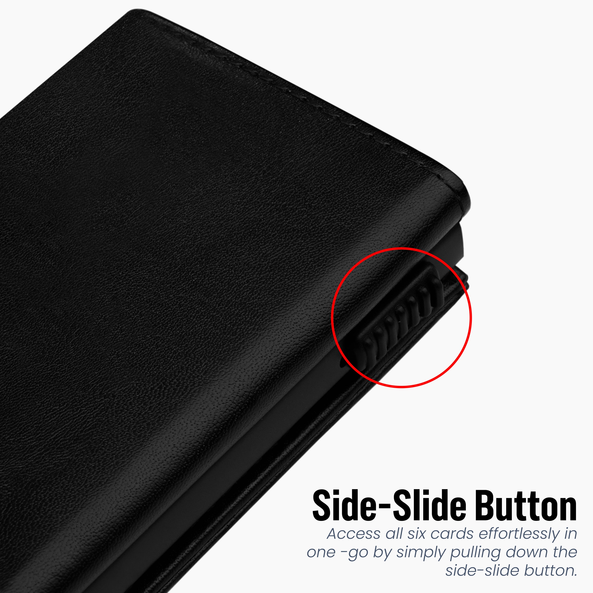 Access all six cards effortlessly in one -go by simply pulling down the side-slide button.