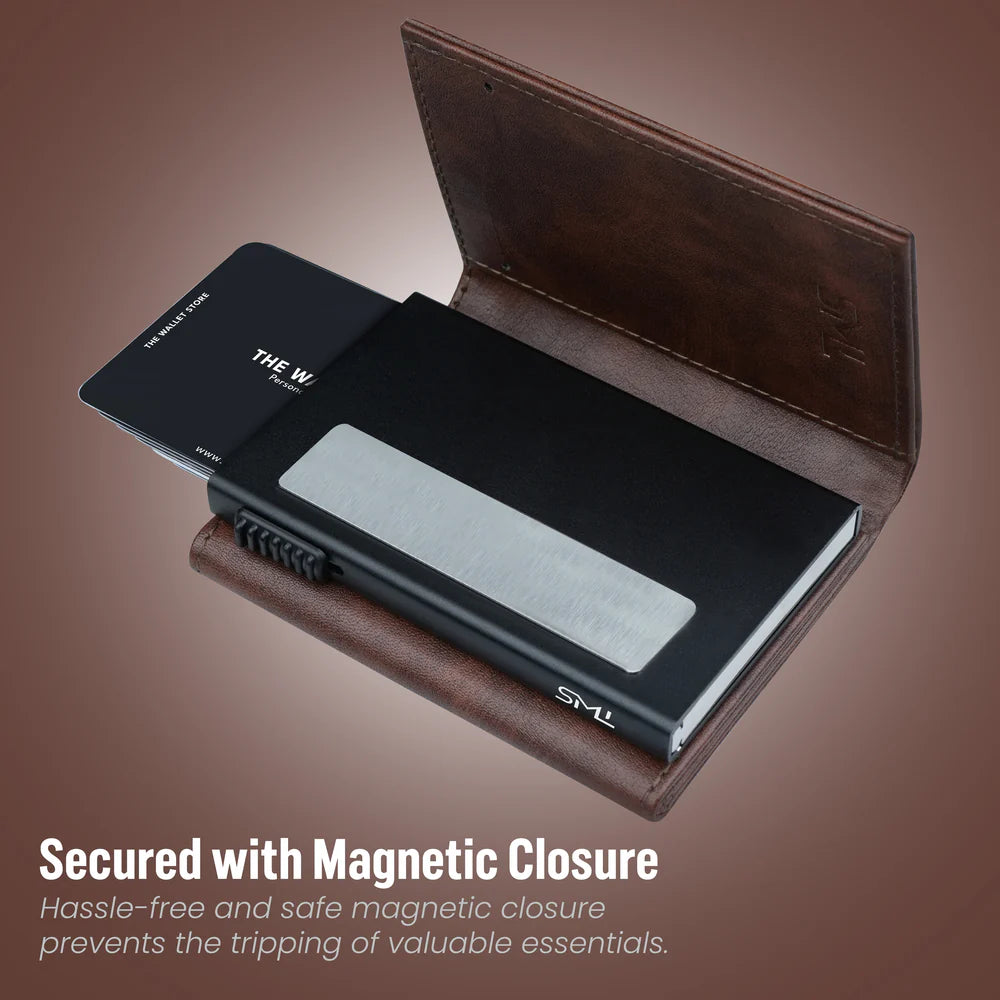 Introducing the Defender RFID Protection Wallet with Side Slider Pop-Up Metal Card Holder, the perfect blend of elegance, security, and practicality. Meticulously crafted to meet the needs of the modern individual, this wallet offers unparalleled convenience without compromising on style. Elevate your everyday carry with the Defender RFID Protection Wallet Card Holder.