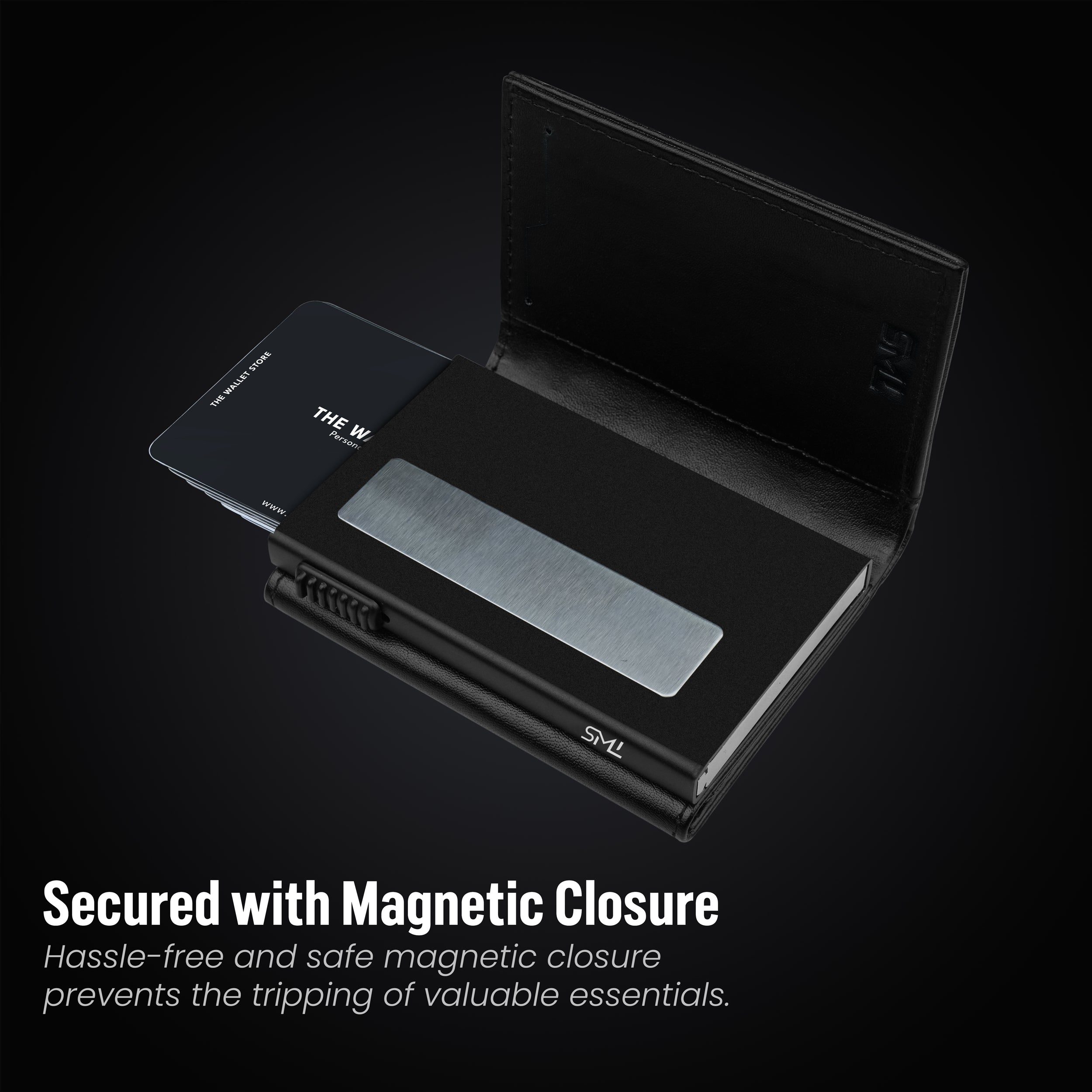 Introducing our Gaurdian RFID Protection Wallet with Side Slider Pop-Up Metal Card Holder, the perfect blend of elegance, security, and modern functionality. Designed for the discerning individual, this wallet combines premium materials and innovative features to offer a superior carrying experience.