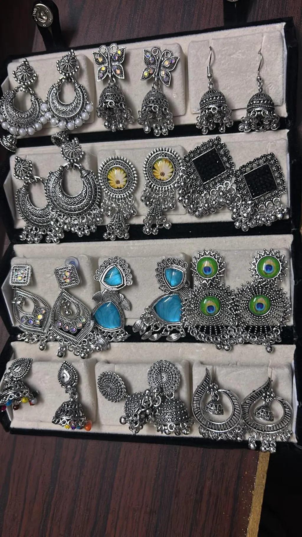 Ishq-E-Jhumka Set Of 12 Oxidized Designer Jhumka Earrings With Jewelry Box