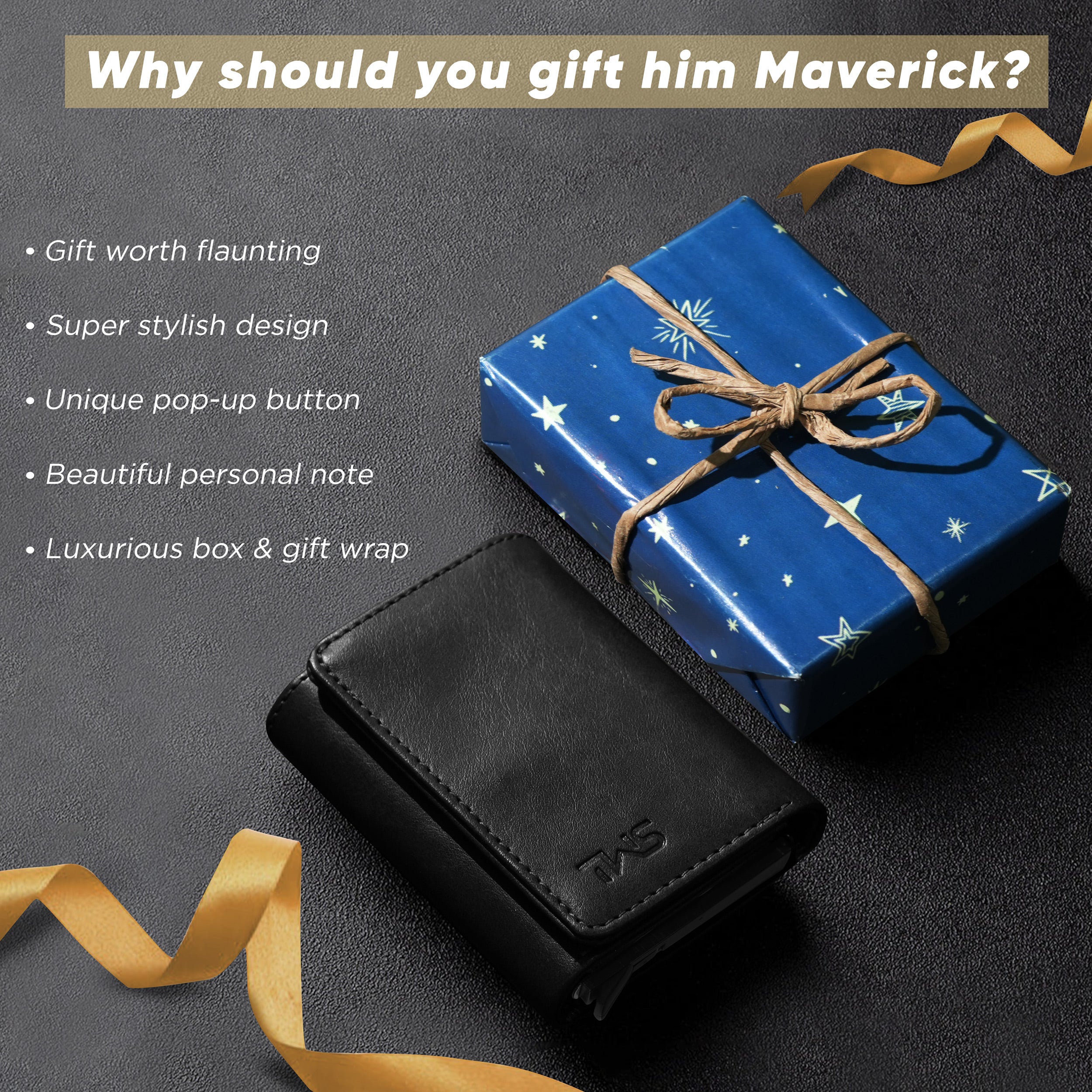 But what really makes this gift special is the full gifting experience it provides. The Maverick wallet comes stunningly presented in a high-quality box, is wrapped in opulent gift wrapping, and features a personalized message card - all set to surprise and impress, straight from the box