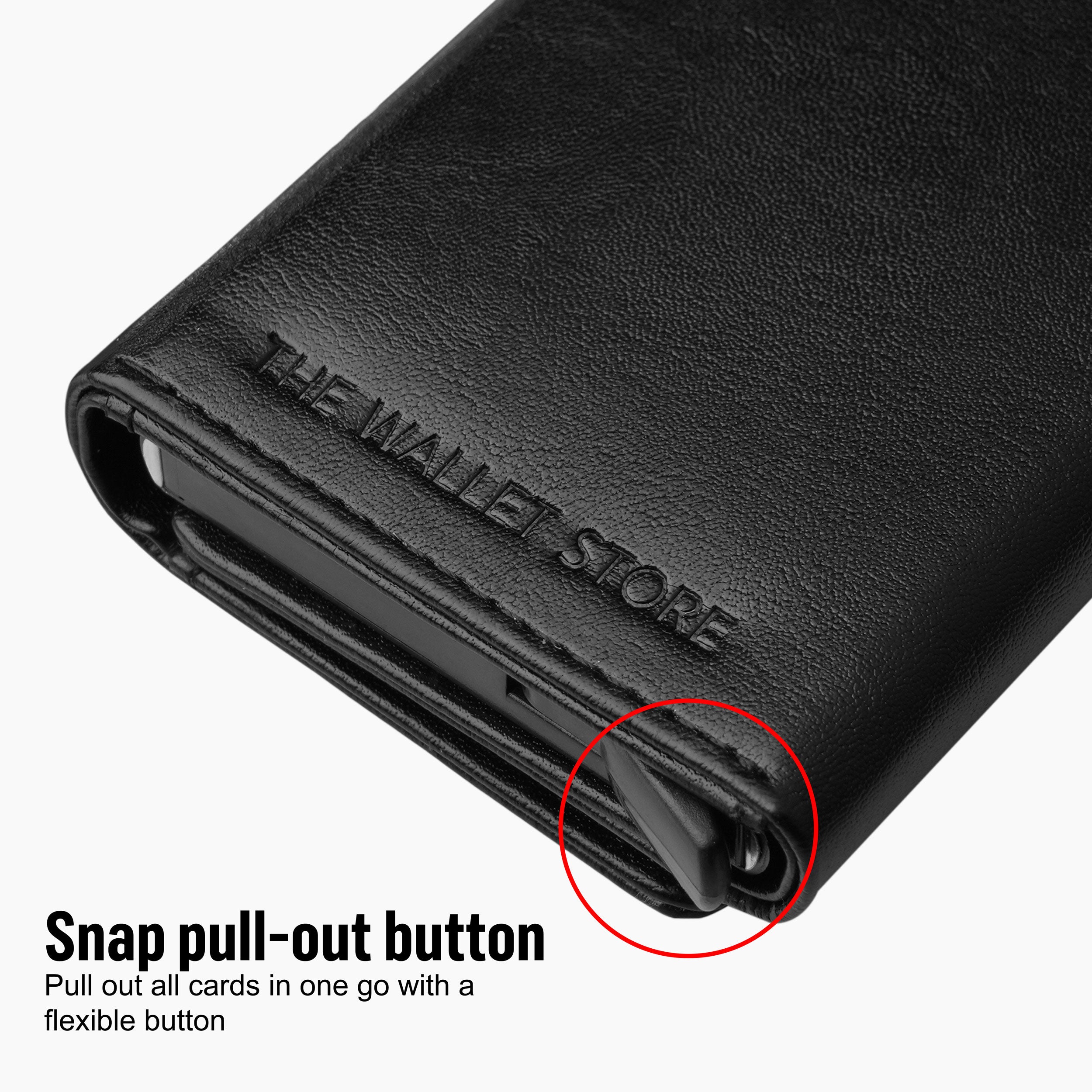 Introducing the pinnacle of style, security, and convenience: our Maverick RFID Protected Leather Wallet with Pop-Up Metal Cardholder. Crafted with meticulous attention to detail and engineered for seamless functionality, this wallet cum cardholder is the ultimate accessory for the modern individual on the move.