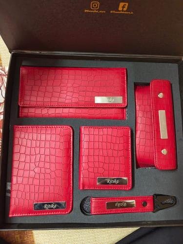 Elevate your gifting game with our exquisite Personalized Gift Set for Women – a collection that seamlessly blends fashion and functionality. This thoughtfully curated ensemble includes a stylish clutch, a chic specs cover, a practical card holder, a sophisticated passport cover, and a fashionable keychain. Designed to cater to the needs of the modern woman, this set is a perfect way to show your appreciation or celebrate a special occasion.