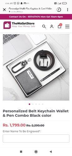 Personalized Belt Keychain Wallet & Pen Combo Black Color