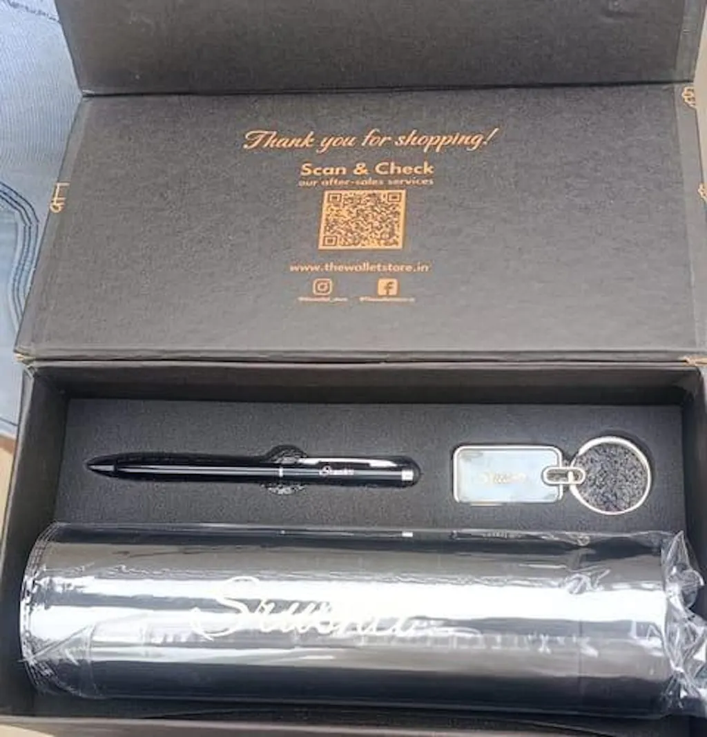 What's In The Box: 1 Personalized Key Chain, Pen & Temperature Bottle