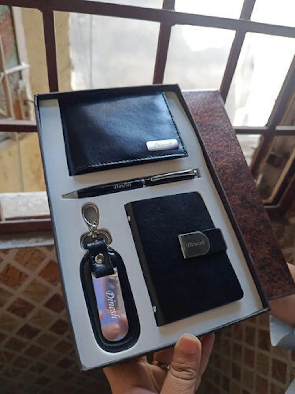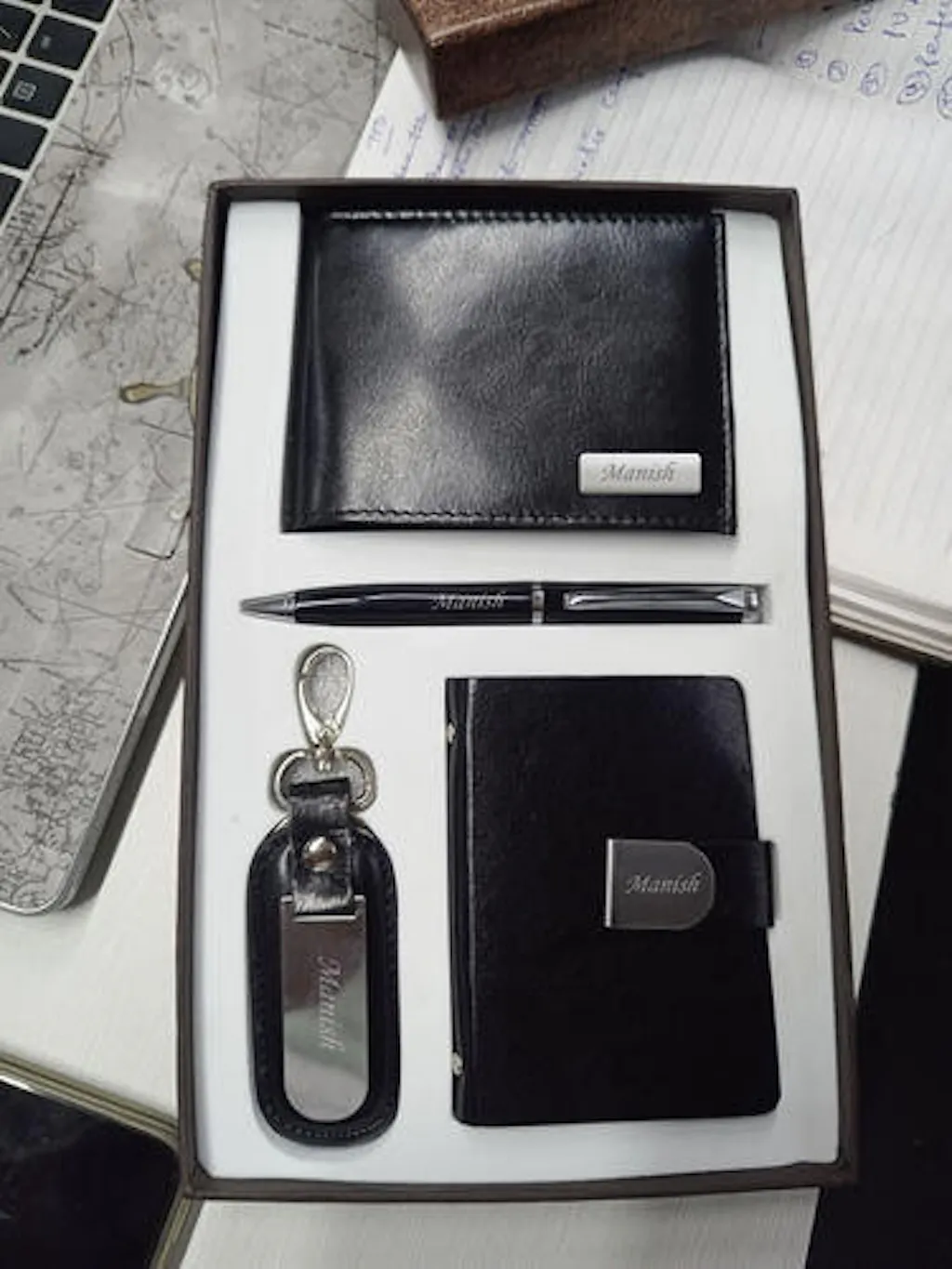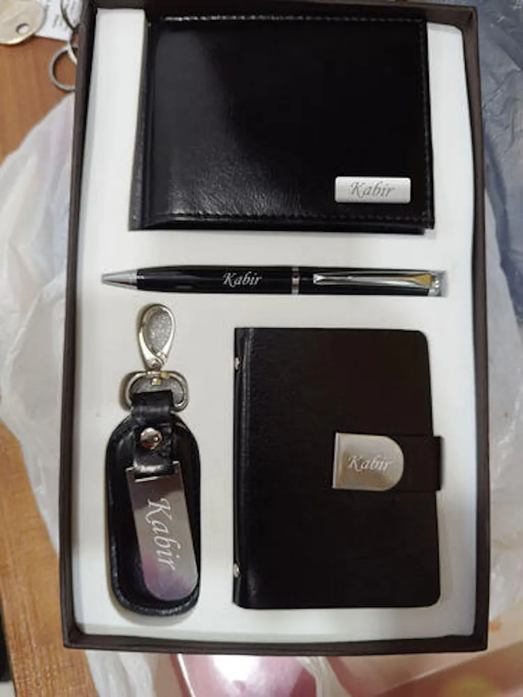 Personalized Men's Wallet Combo with Pen, Keychain & Cardholder