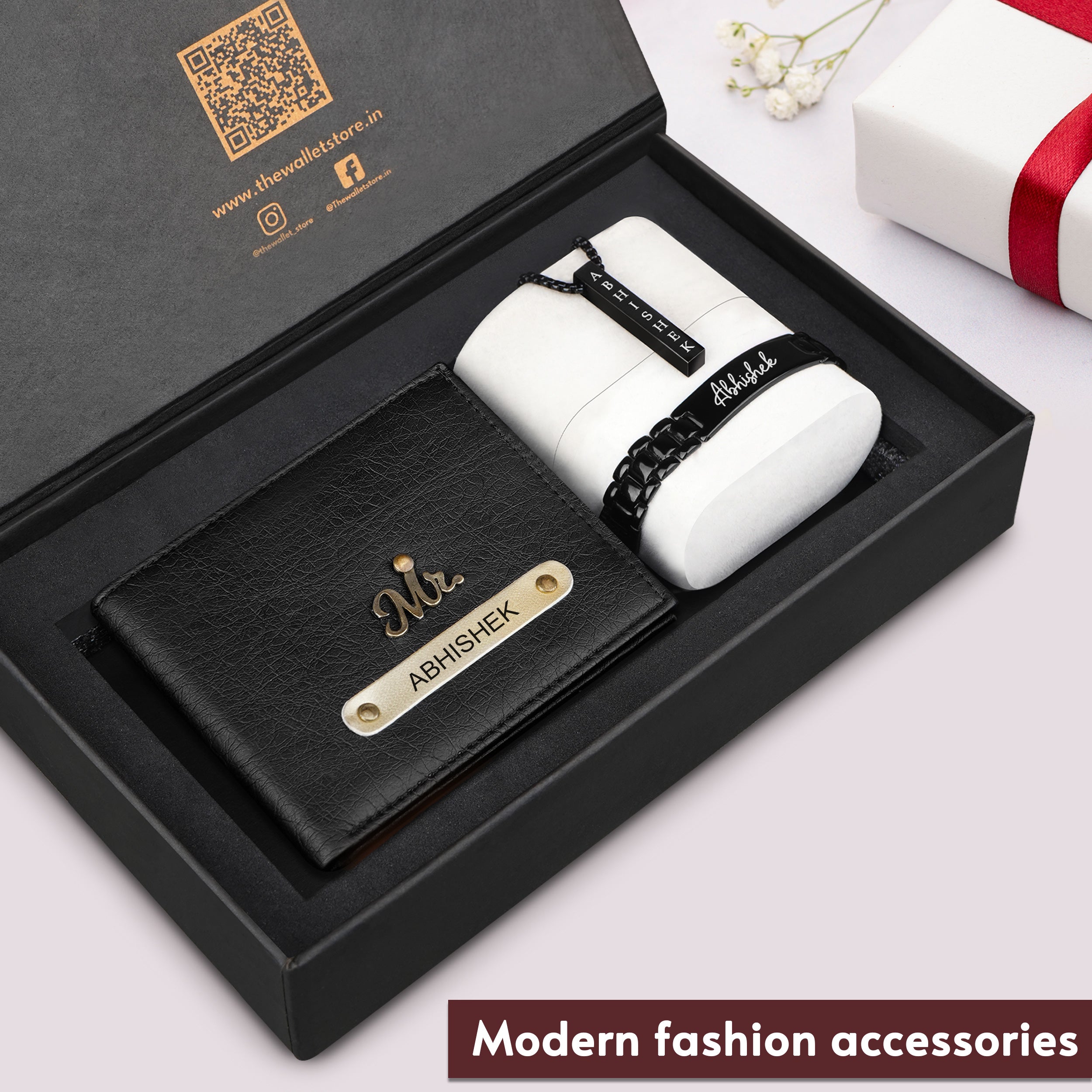 Personalized Modern Man Wallet, Necklace & Bracelet Gift Set