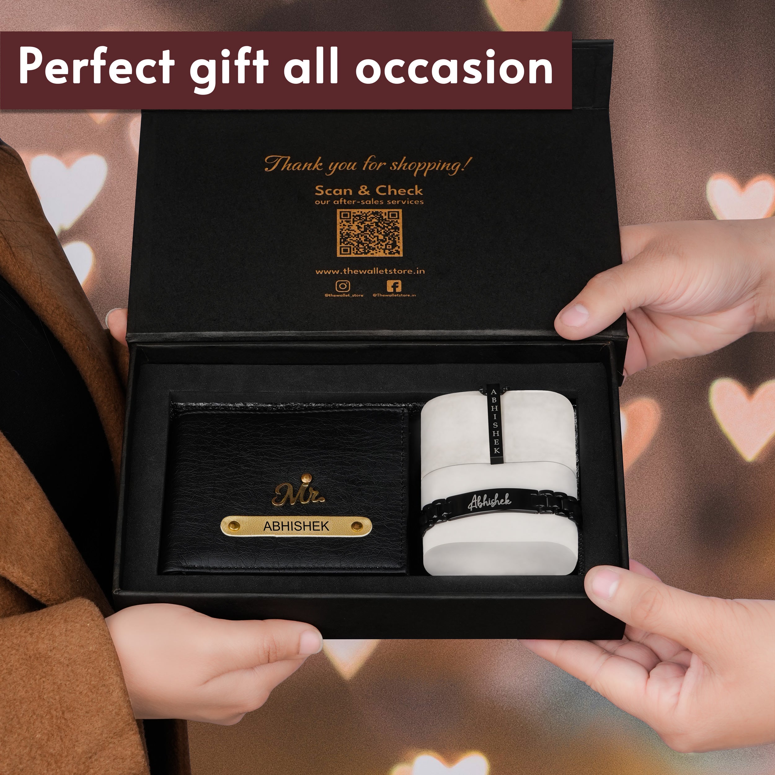 Personalization: Add name (Engraved on wallet, bracelet & necklace), (charm on wallet)