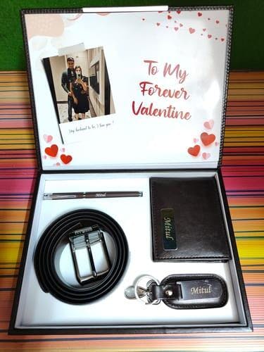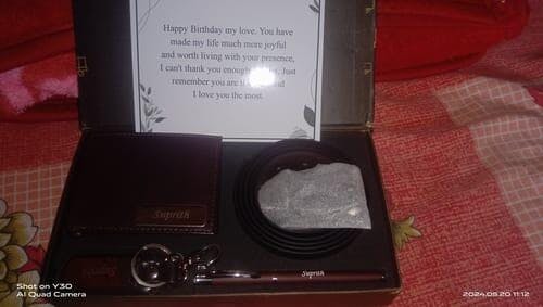 Level up his everyday looks with our contemporary gift set, featuring a modish wallet, keychain, pen, and belt. This is a perfect pick for personal and professional gifting, courtesy of its classy look appeal and premium faux leather construction.