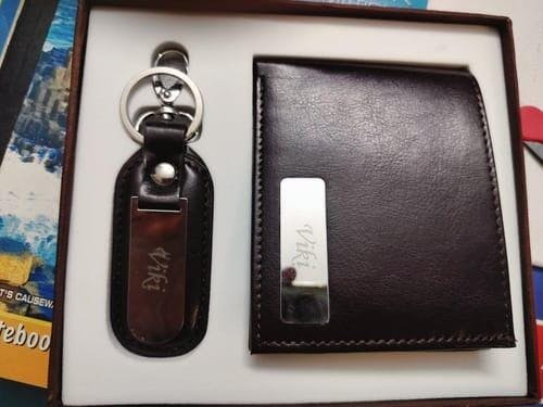 Introducing our personalized faux leather wallet and keychain combo, a stylish and practical accessory for everyday use.