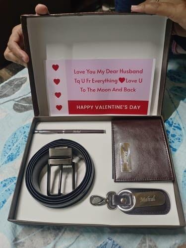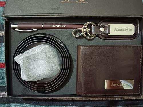 Treat that special him with luxury by giving him this exclusive gift box. Featuring a top-grade leather wallet, keychain, belt, and pen, it is an ideal gift to win his heart.