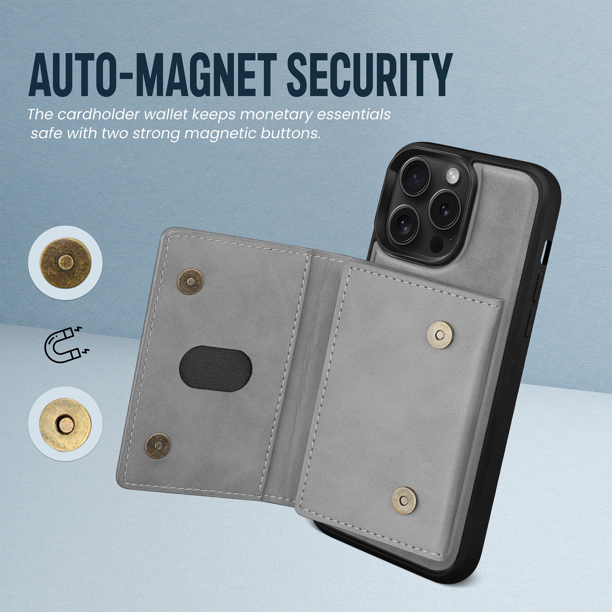 Enhance your iPhone experience with our premium range of vegan leather case covers with magnetic detachable cardholder, designed to combine style, functionality, and sustainability.