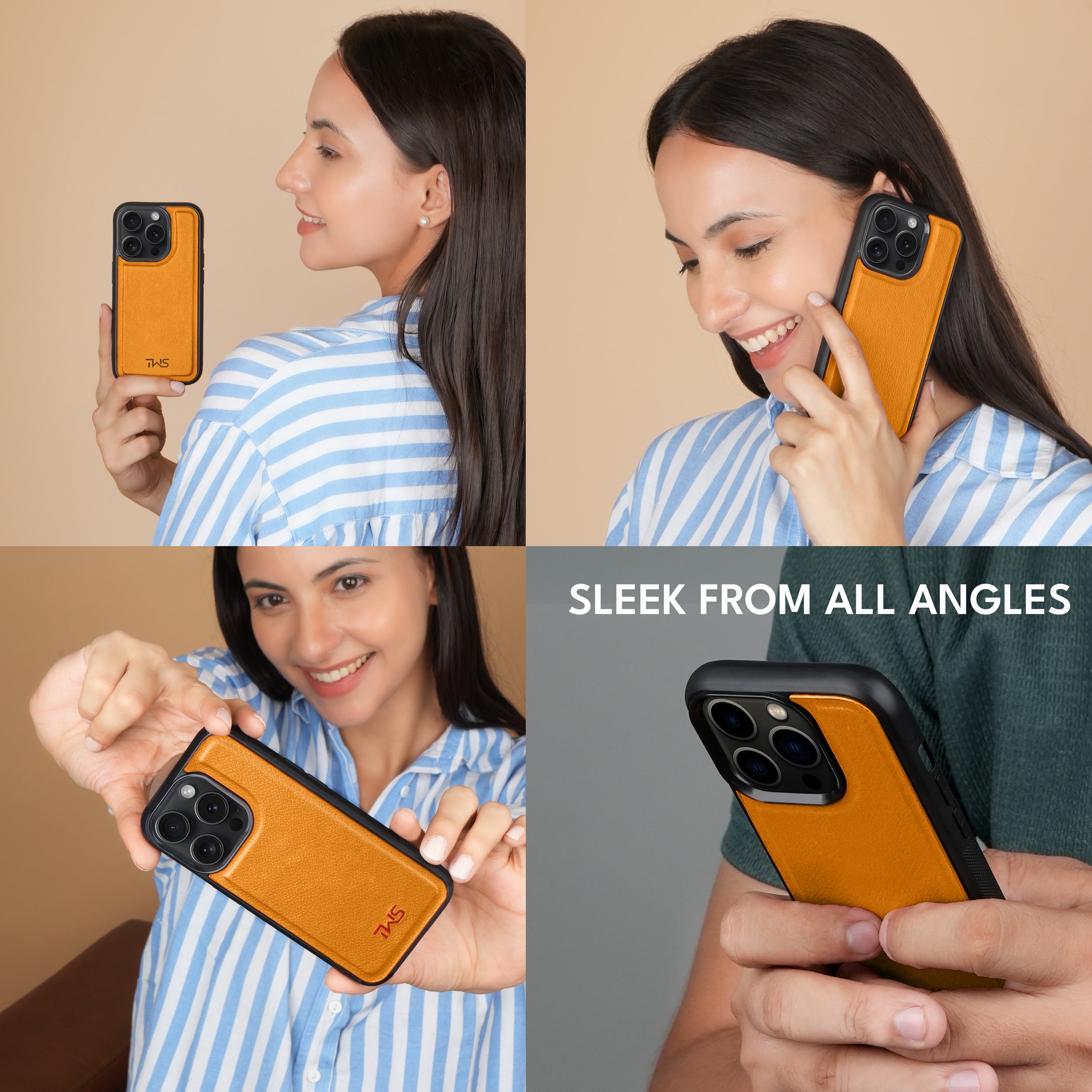 Premium Vegan Leather iPhone Case Cover - Mustard