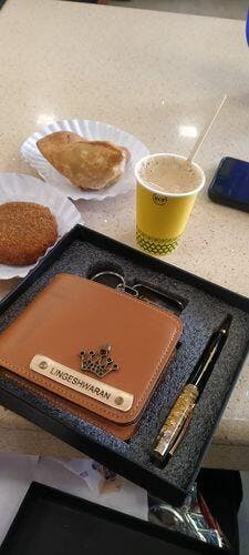 Personalized gifts are the new trends and look super stylish and smart. Here we bought another men’s combo which looks super stylish to give any man in your life. The combo set has 3 smart accessories: a personalized wallet with a beautiful charm, a beautiful black and gold colored pen body and a metallic keychain which can be customized on both sides. All the products are super rich in quality and the wallet is made of faux leather and the keychain & pen’s body is metallic. Wallet color options available.