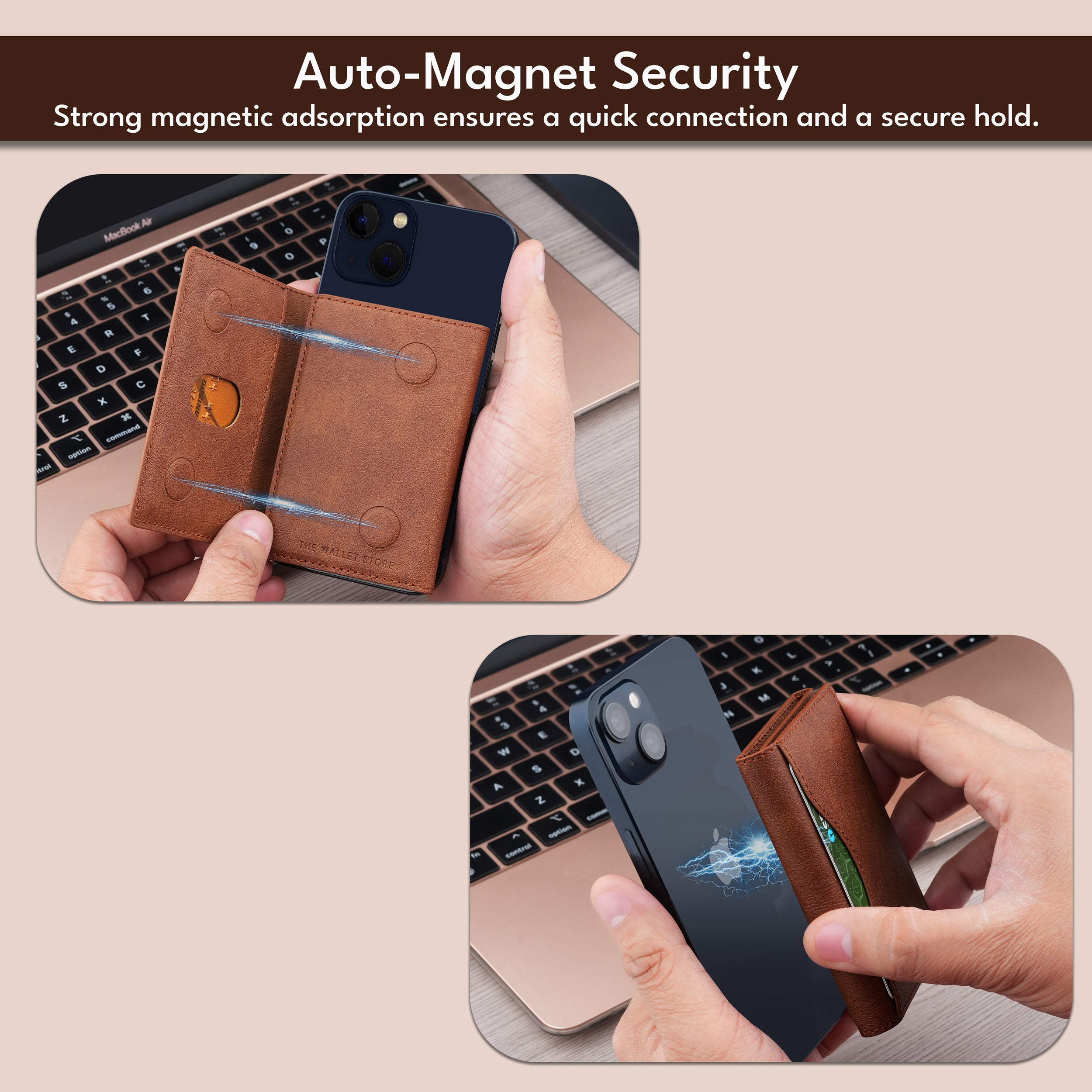 Elevate your everyday carry with this UrbanMag Leather Magsafe Cardholder, designed for seamless style and functionality. Crafted from premium vegan leather, this cardholder is not only durable but also eco-friendly. Its innovative magnetic design ensures secure attachment to MagSafe-enabled devices, offering wireless charging compatibility for ultimate convenience.