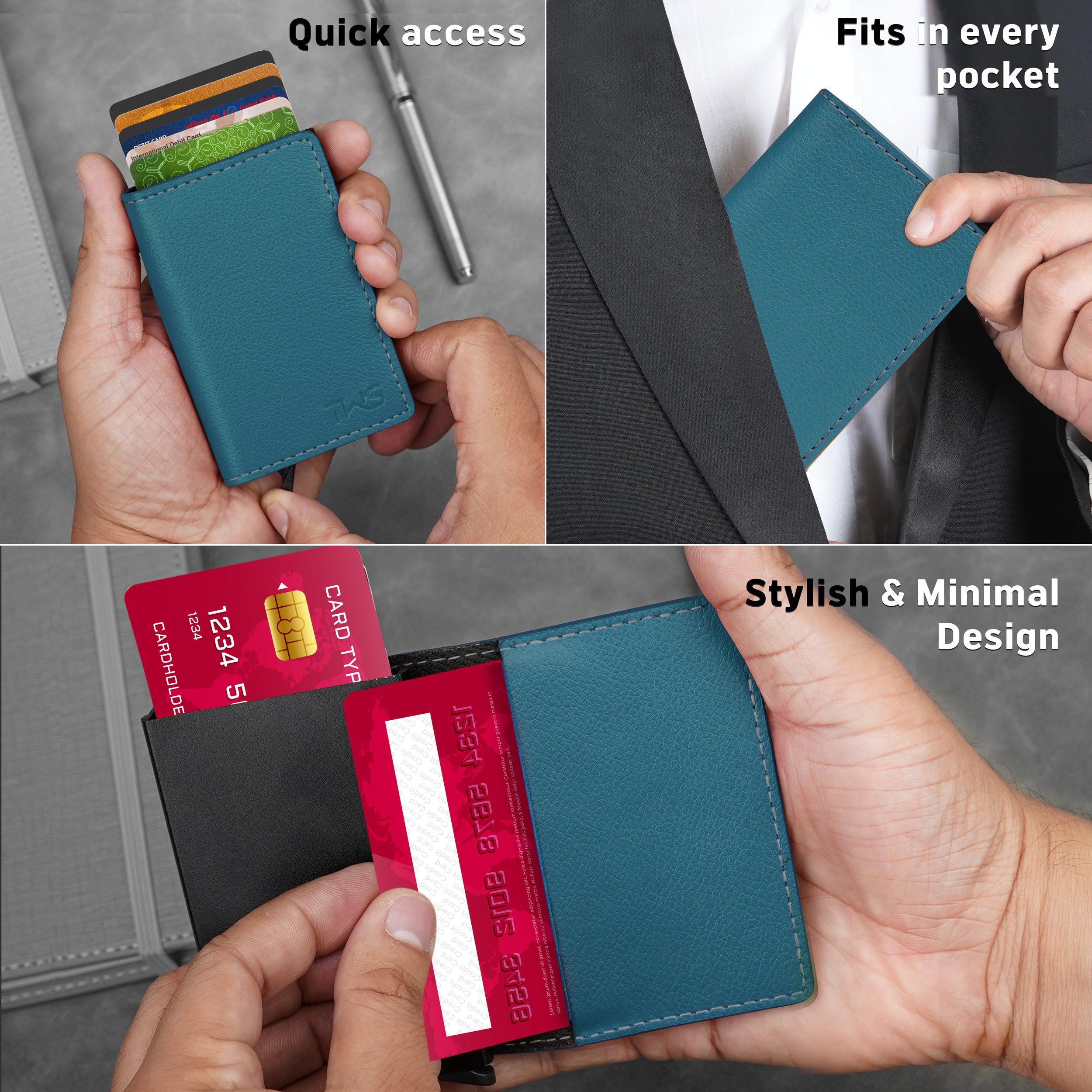 Card carrying capacity: Up to 6 cards (6 cards in metal cardholder, 2 cards in leather cover)